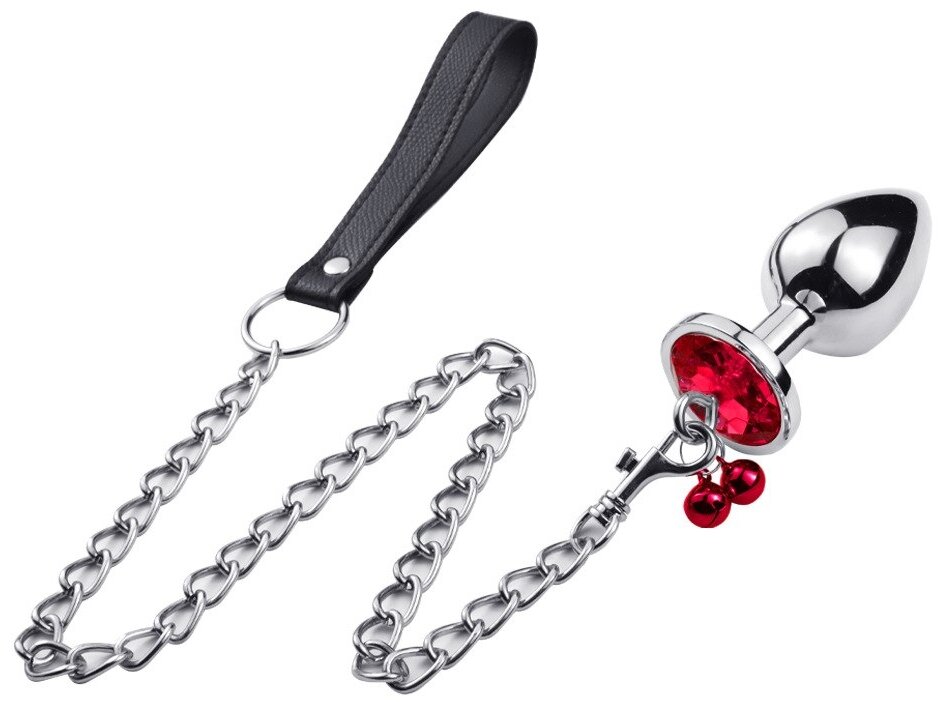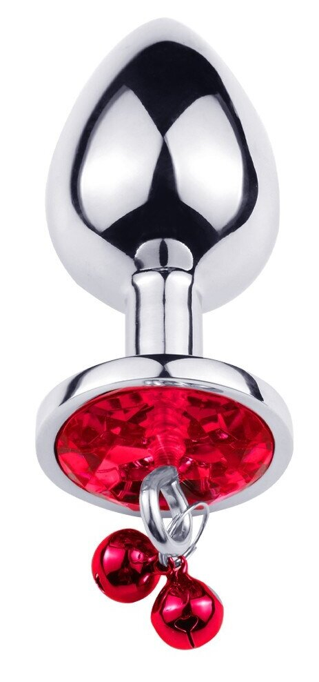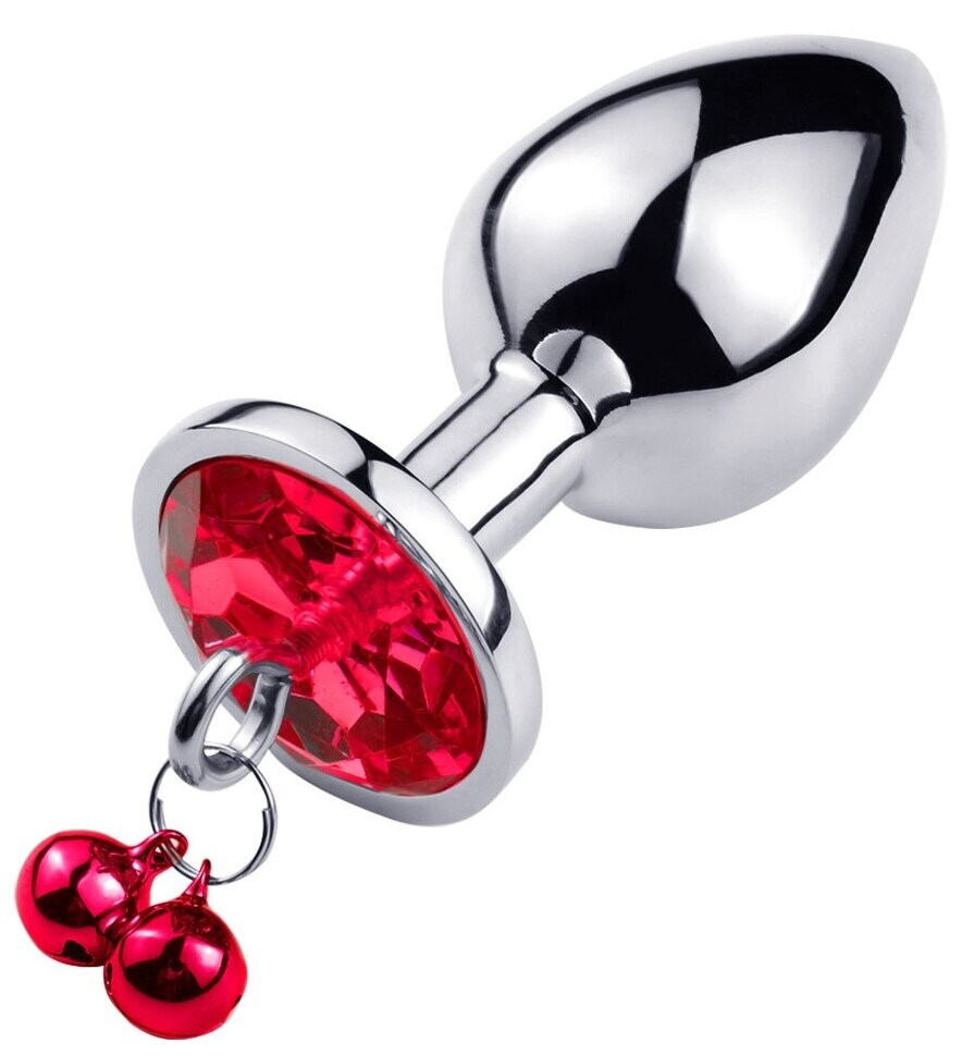 Анальна пробка середнього розміру з нержавіючої сталі. Пробка прикрашена барвистим з кристалом і дзвіночком.