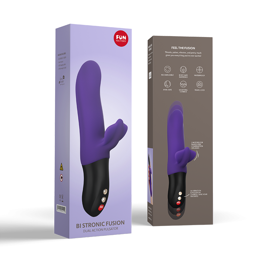 Найочікуваніша новинка 2015 року! Все, про що мріють дівчата, в одній іграшці: знаменитий пульсатор в поєднанні з найпотужнішим вібромоторчиком. Пульсатор Bi Stronic Fusion здійснює поступальні рухи різної сили і забезпечує разюче реалістичні відчуття, а гнучка метелик на стовбурі стимулює клітор вібрацією. Обидва мотори управляються окремо: всього 64 комбінації для насолоди! Вигнутий кінчик спрямований на область G-точки, а широка основа стимулює вхід у піхву. Також можна використовувати для анального проникнення.