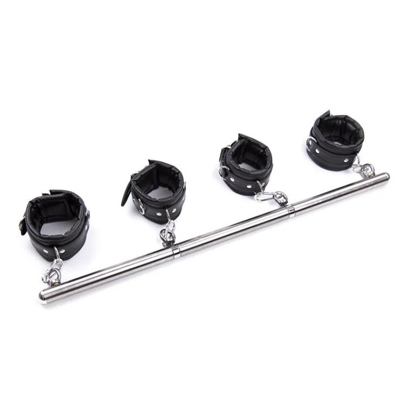 Розпірка для фіксації БДСМ з наручниками та кайданами зі штучної шкіри Removable Hands Cuffs Spreader Bars чорний