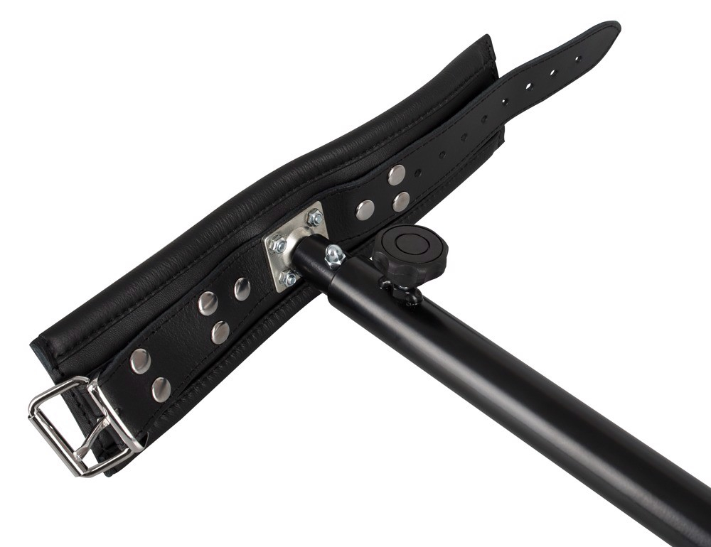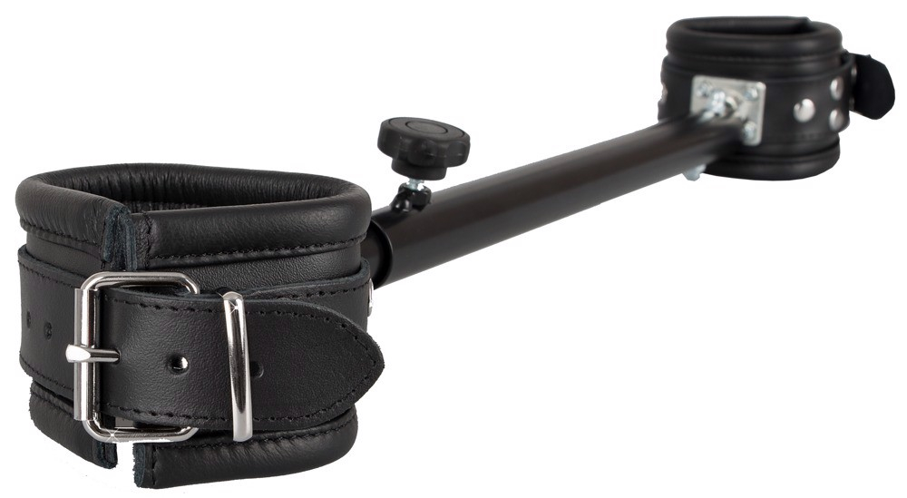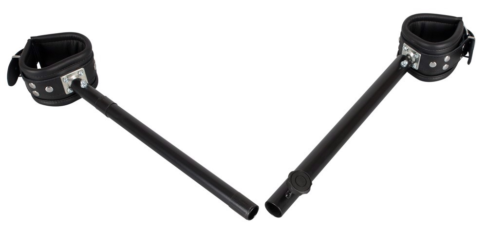 Широко розсунь ноги! Надійно зібрані м'які шкіряні манжети на кісточках на металевій планці, що регулюється (подовження від 35 до 60 см). Манжети регулюються застібками-пряжками. Чорний. Шкіра (наппа), метал.