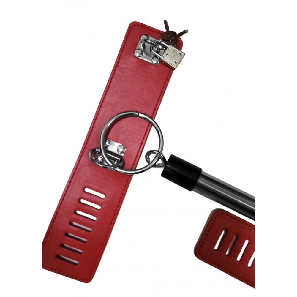 Дозвольте собі зануритися у світ сексуальних фантазій та ігор, відчуваючи повне підпорядкування і контроль за допомогою нашої червоної металевої розпірки з нашийником і наручниками.