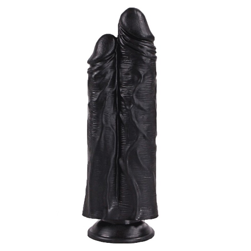 Подвійний фалоімітатор реалістичний на присосці чорного кольору Vscnovelty
