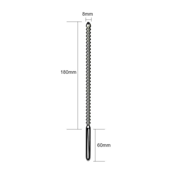 9,5 " довгий ребристий уретральний катетер для просунутої глибокої уретральної ігридіаметр 8 мм для задоволення розтягування і глибокого проникненнядвійний кінець-експериментуйте з гладким і ребристим кінцями.Вага 69 г полегшує установку без допомоги рукзавжди вводите стерильну мастило на водній основі хорошої якості, коли вводите що-небудь в сечовипускальний канал, і обов'язково стерилізують свою іграшку між використаннями.