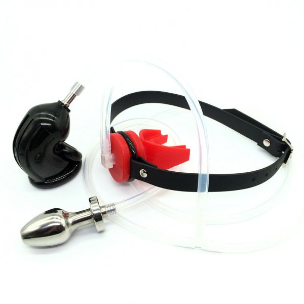 Уринальна система пояс вірності з'єднаний трубками з кляпом для рота і анальної пробкою з ответствием RECYCLER OXBALL