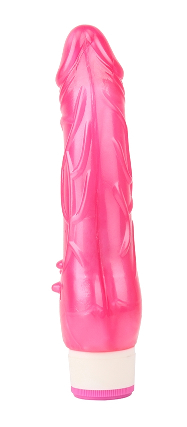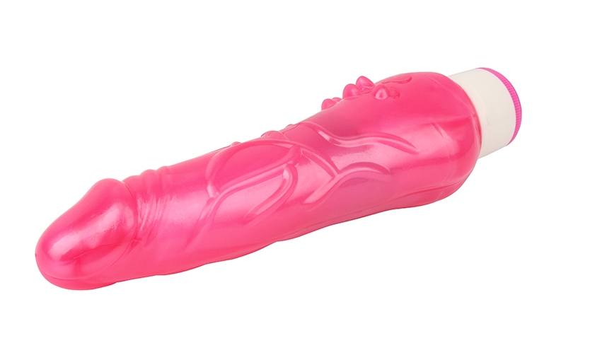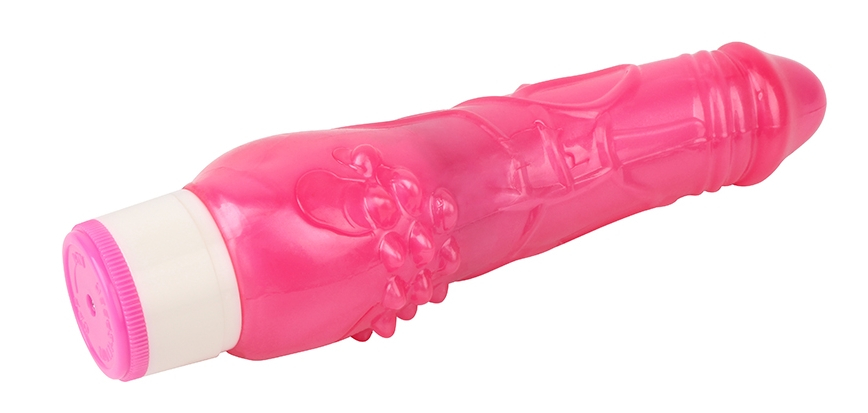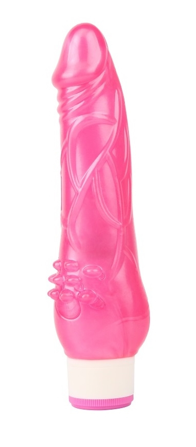 Вібромасажер рожевого кольору, виготовлений з м'якого матеріалу.