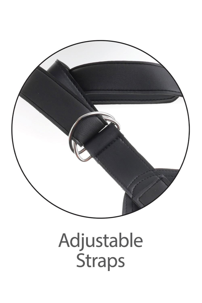 Класичні чорні трусики зі штучної шкіри ідеально сідають на будь-яку фігуру, а також надійно утримують фалоімітатор. Довгі ремені кріпляться за допомогою міцних металевих пряжок-петлів.