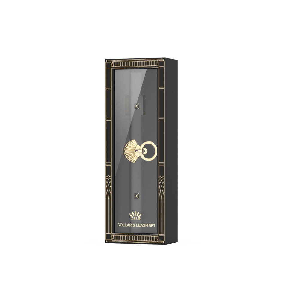 Розкішний нашийник чорного кольору БДСМ з ланцюжком ланцюжком і фурнітурою золотистого кольору Zalo