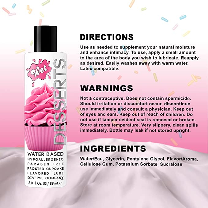 Характеристики Їстівний оральний лубрикант зі смаком кексу WET Desserts Frosted Cupcake 89 мл