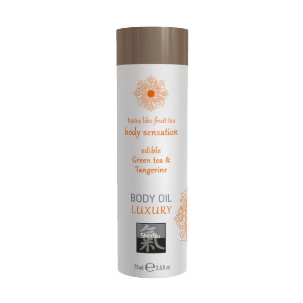 Їстівне масло для тіла зі смаком зеленого чаю і мандарин SHIATSU 75мл