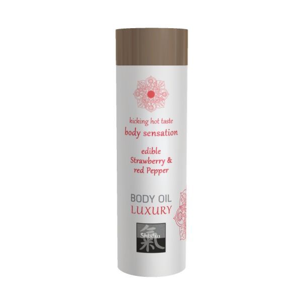 Характеристики Їстівне масажне масло для тіла зі смаком полуниці і червоного перцю SHIATSU 75мл