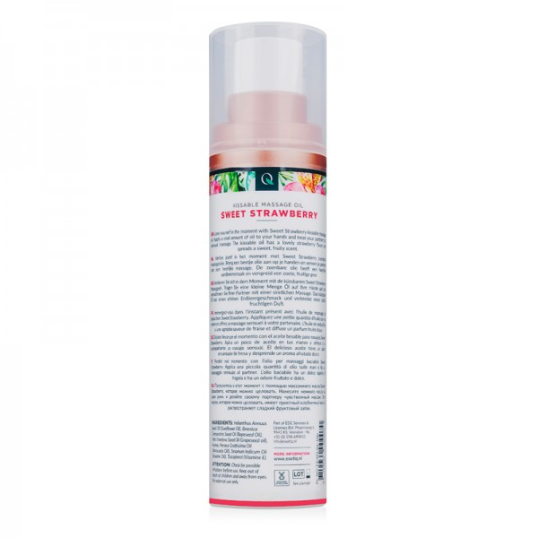 Насолоджуйтесь розслаблюючим ефектом масажу Exotiq. Ця масажна олія має приємний аромат полуниці. За допомогою помпи нанесіть невелику кількість олії на руки, потріть руки, щоб розігріти олію, і ви готові до розслаблюючого масажу. Масажне масло має шовковисту м'якість і поживний ефект.