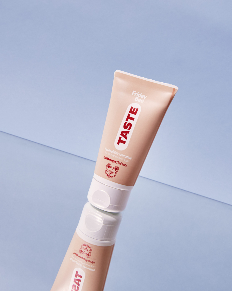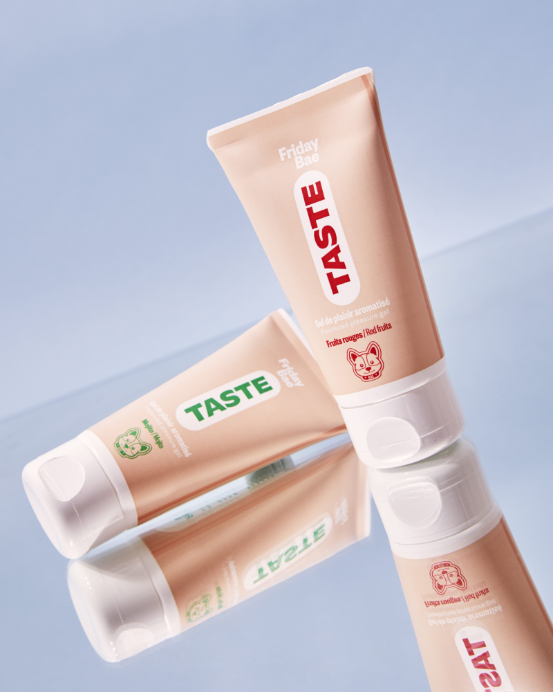 Їстівний лубрикант на водній основі TASTE має довготривалий ефект ковзання та приємний смак і аромат червоних фруктів.
