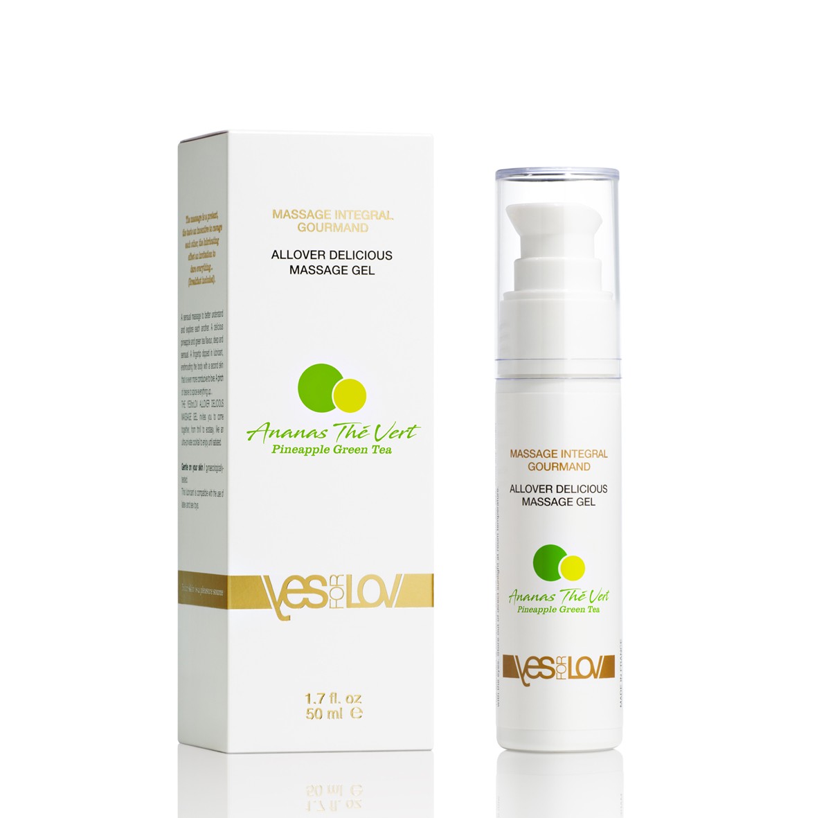 Другий секрет їстівного масажного гелю YESforLOV ALLOVER - це його соковитий смак ананаса з зеленим чаєм, солодкий і чудовий, який так і манить цілувати шкіру абсолютно скрізь, де він нанесений.