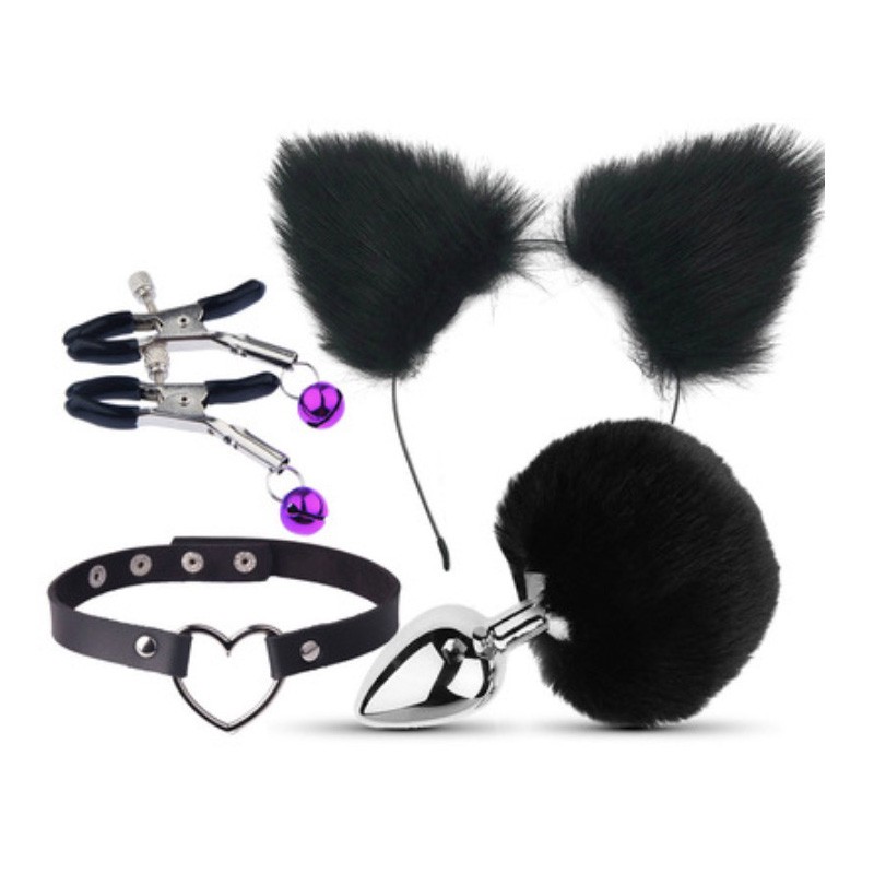 Комплект включає в себе: затискачі для сосків або статевих губ, вушка з хутром, металева анальна пробка з хутром, чокер нашийник з сердечком. Маски, кляпи, нашийники, пояси та багато іншого не залишать Вас та Вашого партнера байдужими. Ви знаєте, що ці іграшки обов'язково додадуть пристрасті та вогню у Ваші стосунки. Вибирайте БДСМ іграшки, які заводять саме Вас та отримуйте максимум задоволення та задоволення. Пориньте в яскравий і повний відчуттів світ БДСМ, де біль межує із задоволенням, а бажання обпалює тіло. Всі різноманітні любовні фантазії вашого світу можна втілити в реальність та отримувати неземне задоволення за допомогою різноманітних іграшок із відділу "Комплекти та набори". Дивіться тільки не переборщіть з так званими насолодами. Адже біль і насолода так близька, а межу між ними так легко переступити. У зв'язку з тим, що не відноситься не до одного з американських і європейських брендів, не має барвистої дорогої упаковки і витрат на маркетинг, це координально скорочує витрати на виробництво і логістику даної продукції по всьому світу, що дає в результаті відносно невисоку вартість кінцевого споживача, при найвищій якості продукції.
