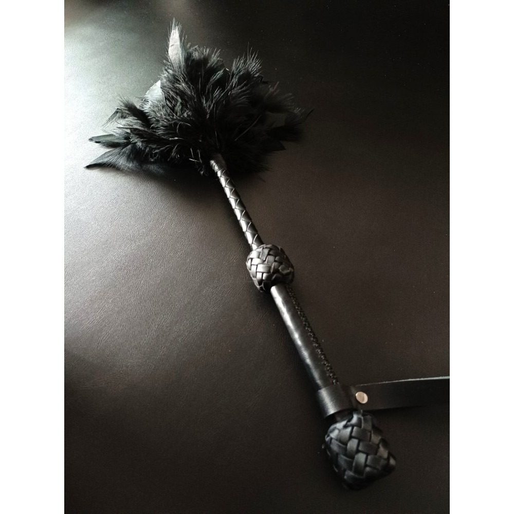 Лоскітка на довгій ручці БДСМ із пера натуральна шкіра чорного кольору Candy Hero модель RCFL1138
