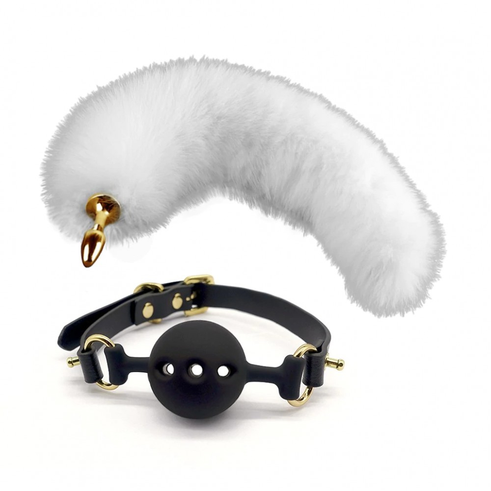 Анальна пробка з довгим білим хвостом (натуральне хутро)