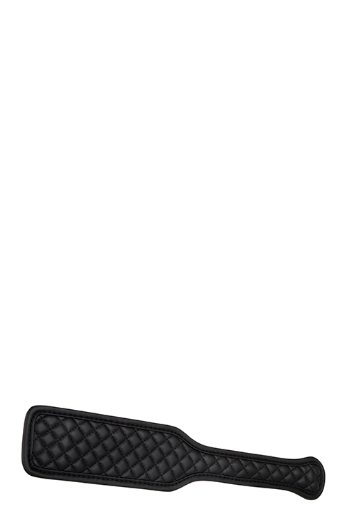 Задовольняйте свої найдивніші бажання за допомогою цього сексуального падлу для ляпанців. Його поверхня з веганської шкіри з ромбоподібним візерунком зухвало цілує вашу шкіру, викликаючи еротичні відчуття, які ви ніколи не забудете. Вага цього паддла чудово відчувається у вашій руці, а атласно-гладка поверхня веганської шкіри забезпечує відмінну ласку, перш ніж ви дістанетеся до фінальної шльопання. Твердий, але гнучкий, він також забезпечує ідеальний звук бавовни та красиво відскакує від голої шкіри – щоб втілити усі ваші мрії про ляпанці!