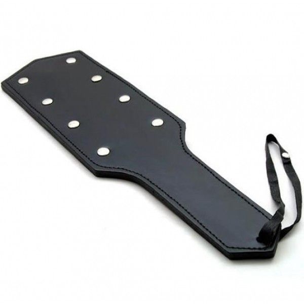 Шлепалка шкіряна чорна з металевими заклепками для БДСМ