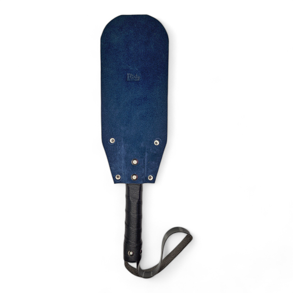 Шльопанка із замшевої шкіри з твердою ручкою та петелькою ручна робота, колір синій для рольових ігор від Виробника Flirty Collection. Оцініть класичну форму та універсальний характер цієї дивовижно шльопалки. Вона забезпечує відмінне захоплення і дозволяє випробувати ляпаси старої школи новим, більш елегантним способом. Відмінно підходить для домінуючого партнера, але і для тих, хто любить перемикатися між ними. Пляска Flirty Collection зроблена з натуральної шкіри. Вона має тверду ручку з петелькою і хлистом. Такий БДСМ аксесуар відмінно підійде новачкам. -матеріал: Замшева шкіра; -Довжина: 35 см; -Ширина: 10 см; -Довжина робочої частини: 24,5 см; -Колір: Синій