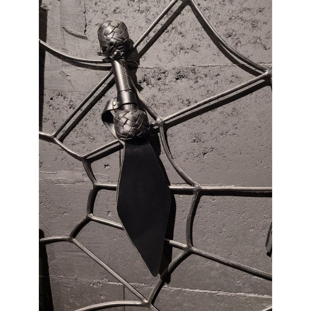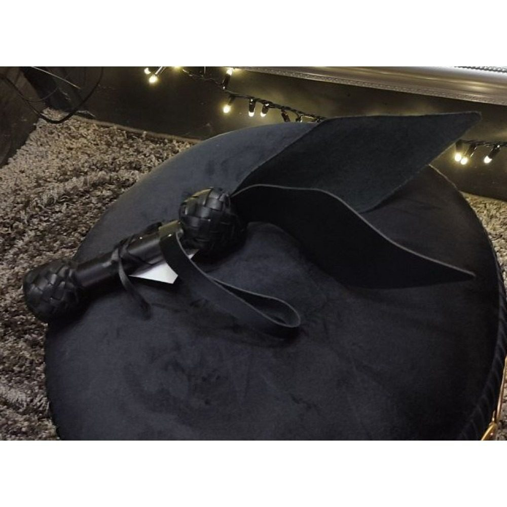 Шльопанка з подвійною ударною частиною БДСМ із натуральної шкіри високої якості чорна Candy Hero