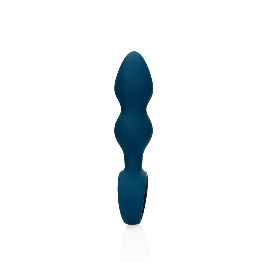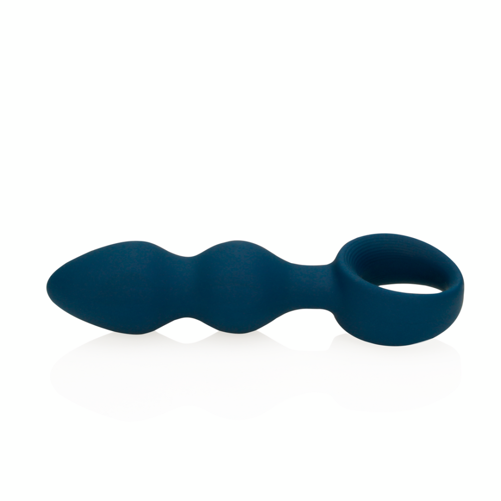 Силіконова анальна пробка рельєфна з кільцем синього кольору Loveline розмір L