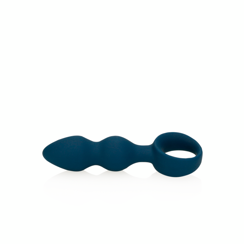 Силіконова анальна пробка рельєфна з кільцем синього кольору Loveline розмір S