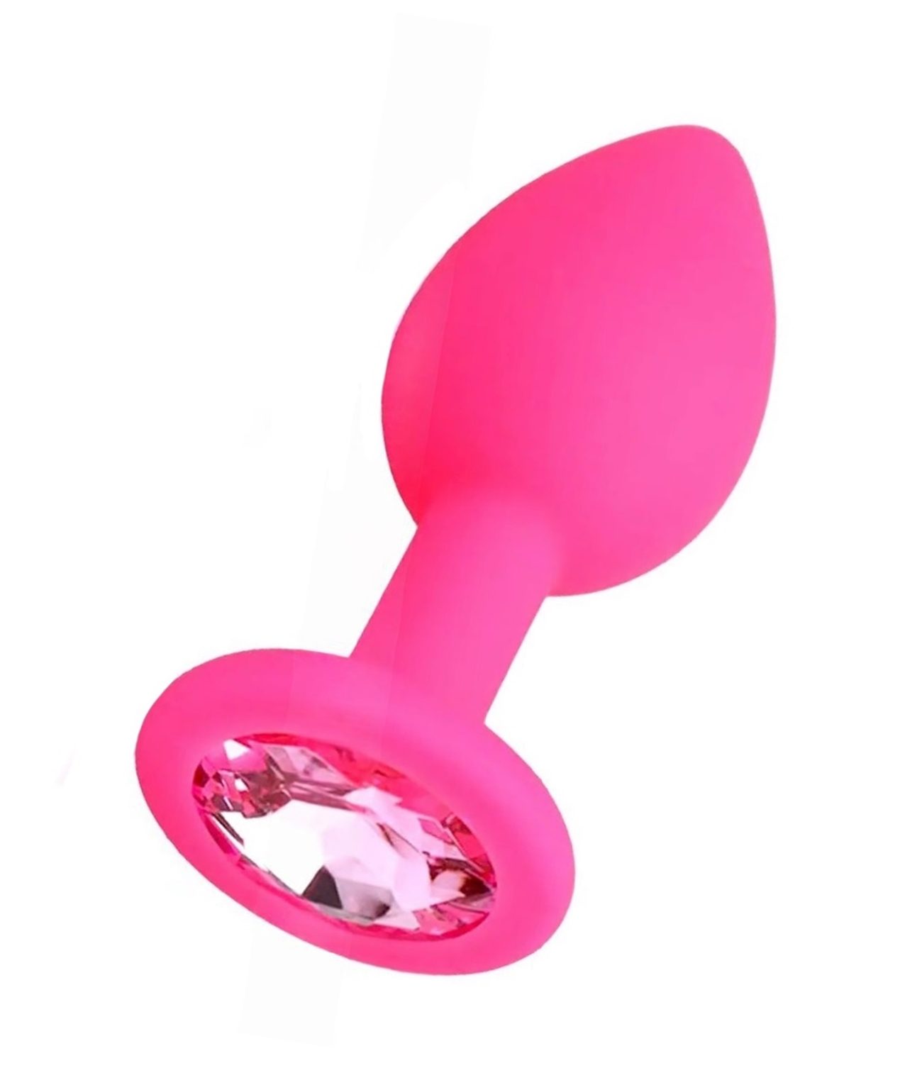 Силіконова анальна пробка рожева з рожевим кристалом SKN розмір S