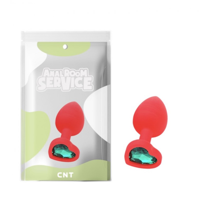 Анальна пробка силіконова червоного кольору із зеленим камінчиком у формі серця Cnt Love Diamond розмір Small