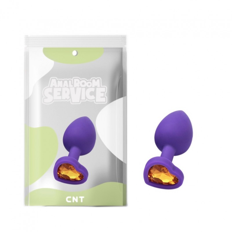 Анальна пробка силіконова фіолетового кольору з жовтим камінчиком у формі серця Cnt Love Diamond розмір Small