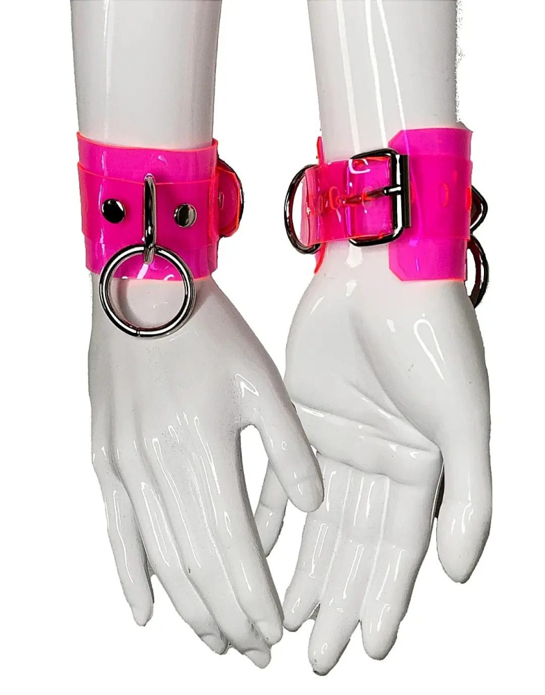 Наручники DS Fetish Handcuffs transparent – приємні, функціональні та прості у використанні. Є два браслети на міцних замочках, які можна як з'єднати між собою карабінами, так і роз'єднати, або закріпити карабіни на відповідному ланцюжку і т.д.