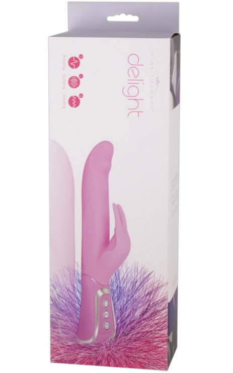Девайс дозволить повністю розслабитися та зосередитись на власних відчуттях. Бархатиста поверхня і форма, що обтікає, робить момент проникнення максимально приємним і комфортним. Вібратор оснащений 7 режимами вібрації та водонепроникним корпусом. Працює іграшка від батарей і управляється за допомогою зручної панелі, розташованої на ергономічній ручці. Виріб виготовлений із медичного силікону. Вібратор Vibe Therapy Delight здатний ощасливити будь-яку жінку. Він легко знайде найчутливіші точки на вашому тілі і доведе до піку блаженства. Розкішний девайс із кліторальним відростком стане ідеальним доповненням вашої колекції секс-іграшок.