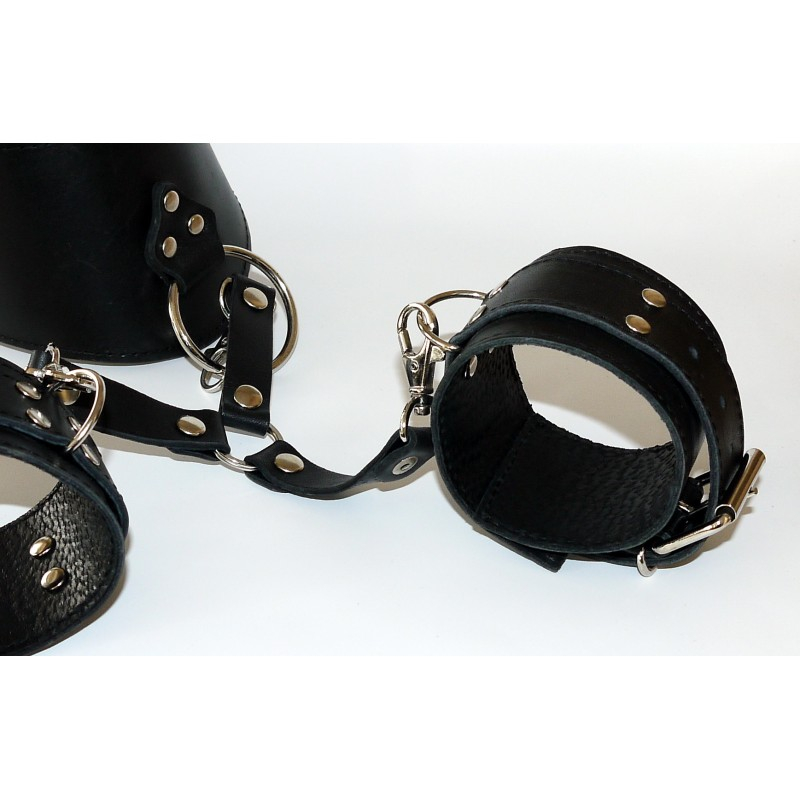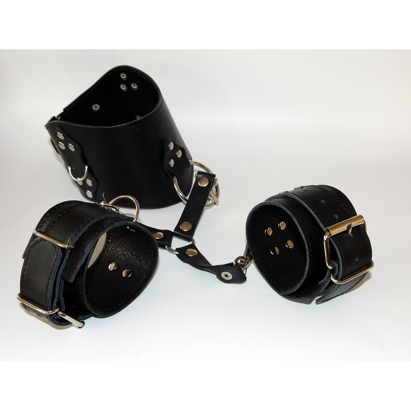 Система фіксації БДСМ для шиї та рук із натуральної шкіри чорного кольору Scappa