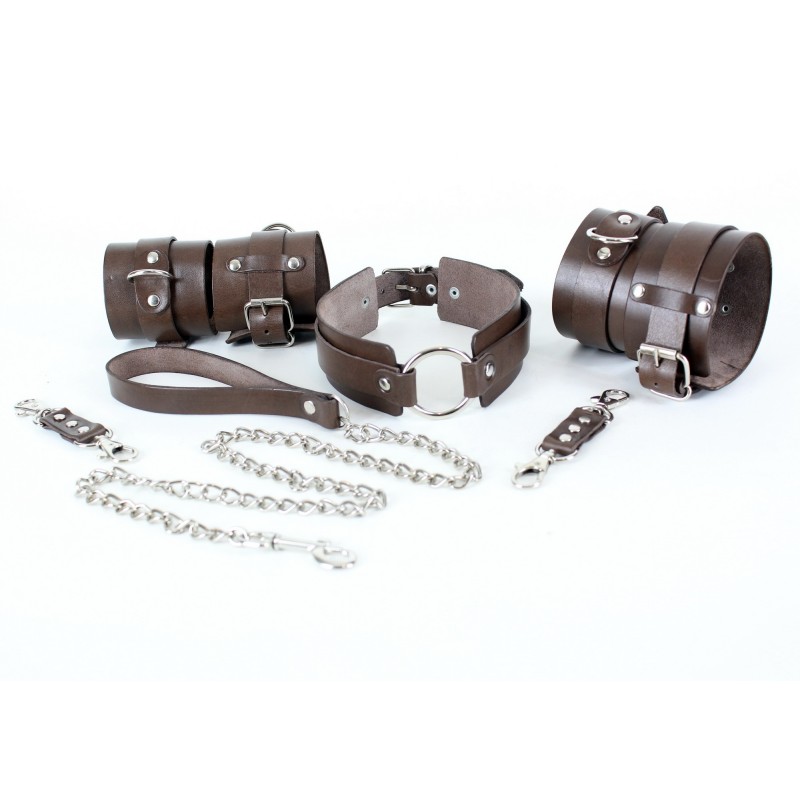 SET-44 Набір шкіряні нашийник, наручники, наножники, повідець та конектор