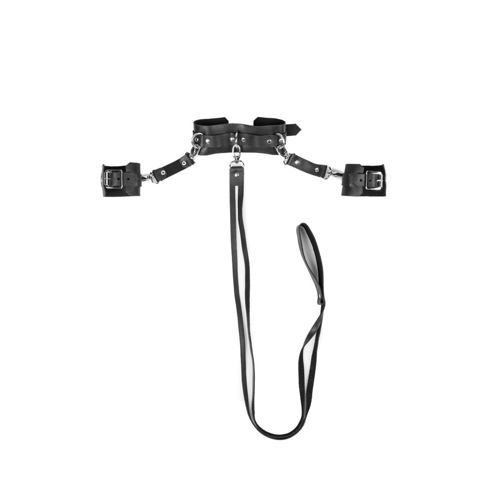 Система фіксації для тіла БДСМ із фіксаторами для шиї та рук штучна шкіра чорна Candy Hero