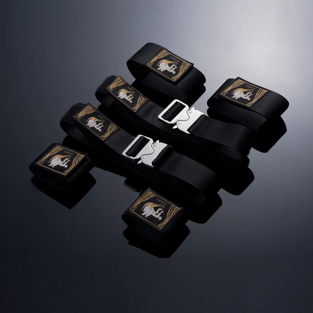 Вгору і вниз, як на атракціоні, відчуття та враження кружляють голову! Натхненна ременями безпеки на американських гірках, металева пряжка та нейлонові ремінці забезпечують сильне відчуття безпеки, гарантуючи справді глибокі відчуття від гри. Розстібка сама по собі допомагає керувати настроєм та випробувати всі емоції, вимагаючи, щоб ви робили це красиво та плавно. Ремені мають липучки та можуть бути використані безпосередньо для бондажу. Система фіксації виготовлена з нейлонової тканини, м'якої, приємної для шкіри та еластичної. Доповнені оригінальним візерунком UPKO на манжетах створюють вишуканий та неповторний, веселий та захоплюючий стиль. Фурнітура виготовлена з високоякісного цинкового сплаву, сильна та міцна. Щоб задовольнити найсміливіші фантазії про викриття, прив'яжіть свого партнера до стільця і проведіть нове сексуальне розслідування, яке заслуговує на покарання. Використовуйте систему для бондажу, щоб перетворити кожен ігровий сценарій на розкішну сцену допиту. Ви також можете скористатися ударним девайсом, щоб ваш підозрюваний скоріше висловив всю правду. Або ж зробіть гру ще цікавіше і доповніть її кляпом-кулькою.