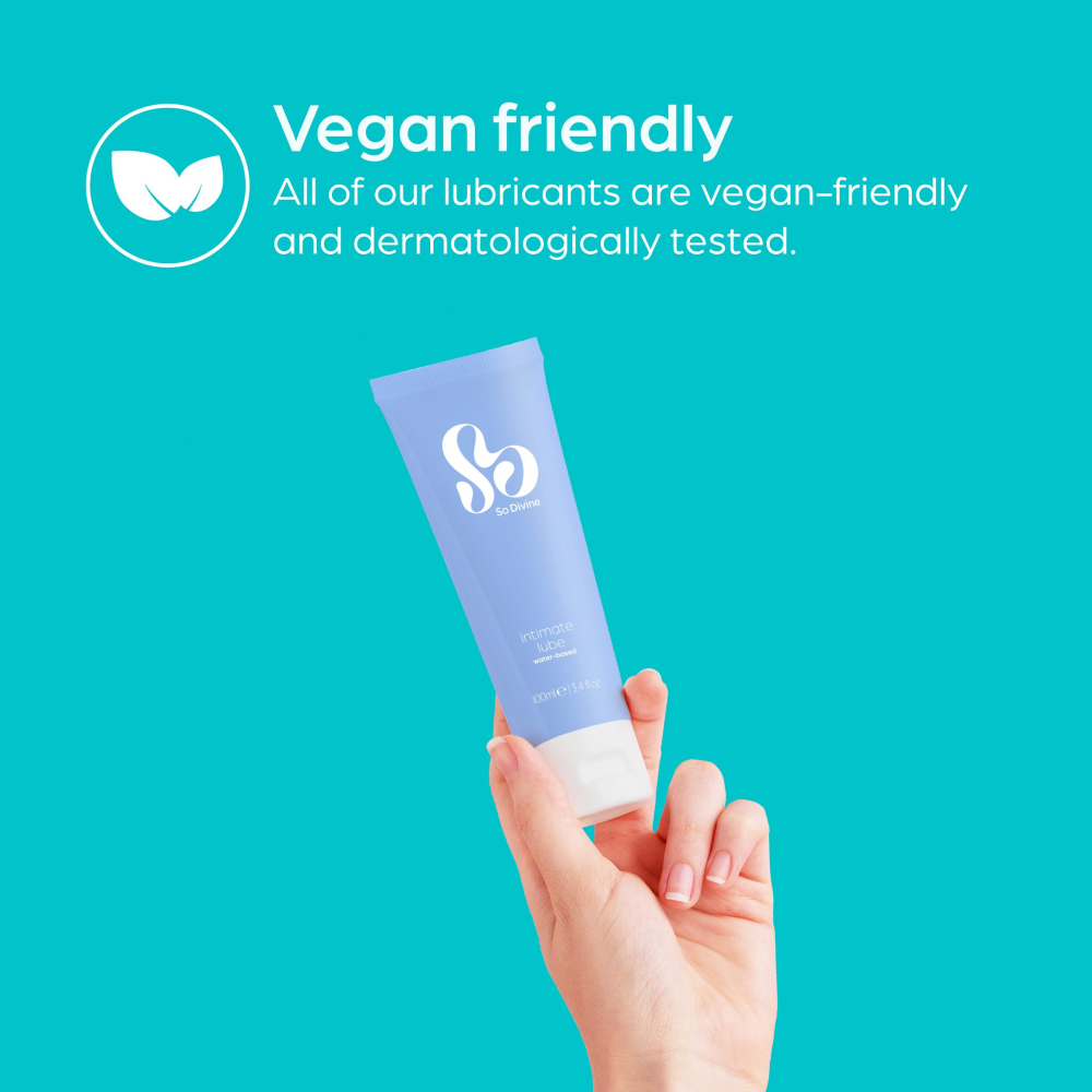 Підходить для веганів Всі інтимні мастила So Divine веган і не містять продуктів тваринного походження. Вони 100% безпечні для організму та не містять парабенів.