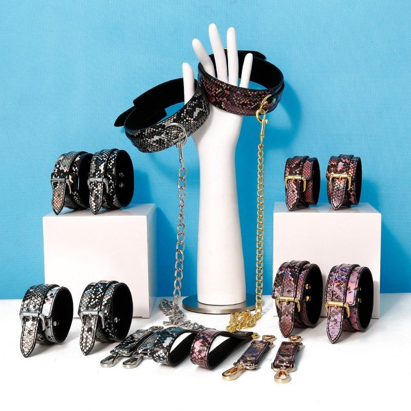 Характеристики Набір для бондажу та фіксації БДСМ із зміїним візерунком чорно сірого кольору Vscnovelty Snaker вondage кit 3 предмета