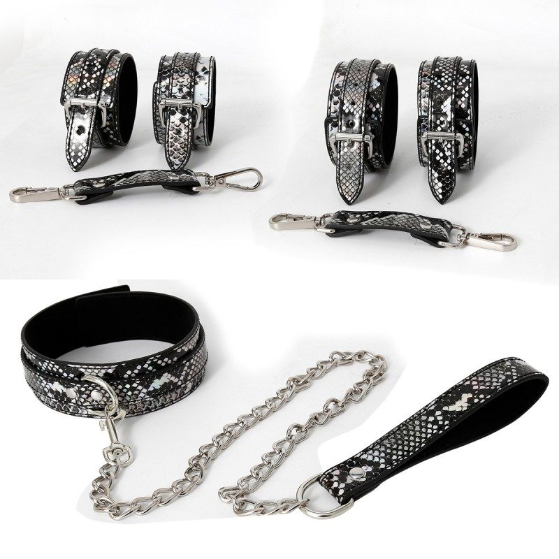 Набір для бондажу та фіксації БДСМ із зміїним візерунком чорно сірого кольору Vscnovelty Snaker вondage кit 3 предмета
