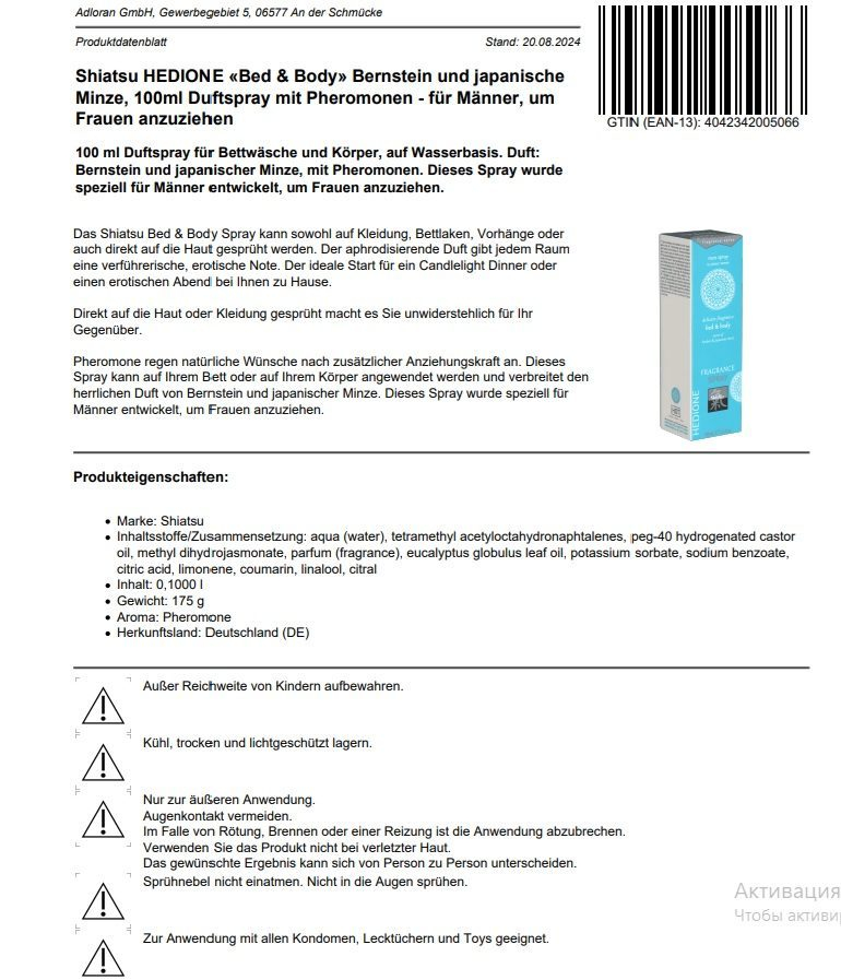 Афродизіаки та активні речовини у складі спрею подарують дуже приємний, збуджуючий та стійкий аромат.