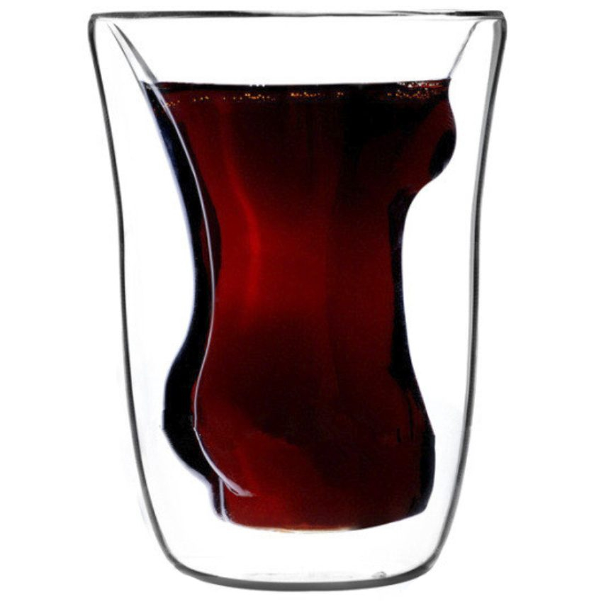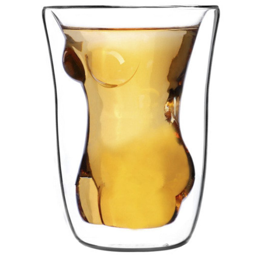 Склянка з подвійним дном стане чудовим презентом будь-якому чоловікові. Налийте в нього темну рідину і спостерігайте, як виявляться контури граціозного жіночого тіла. Аксесуар виконаний із міцного скла, тому можете використовувати його для холодних та гарячих напоїв, ставити у мікрохвильову піч. Зображення оголеної жіночої фігури незмінно радуватиме чоловіче око, і пробуджуватиме грайливий настрій. Це чудовий презент на хлопчак, який підніме настрій і запам'ятається на довгі роки.