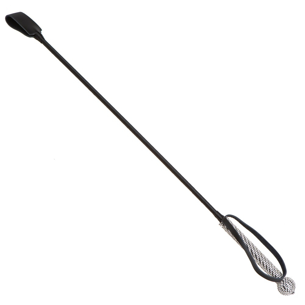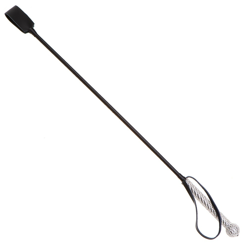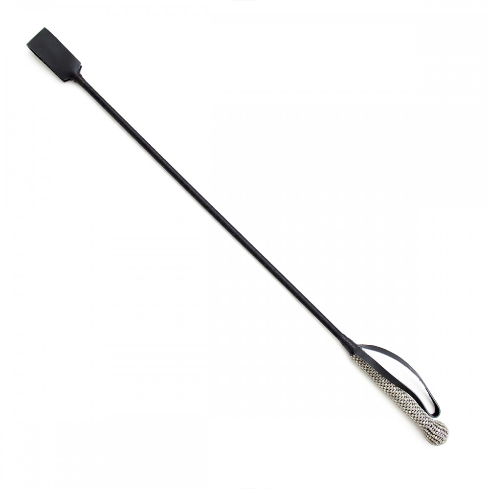 Стек БДСМ чорного кольору з ручкою в сріблястих камінчиках DS Fetish Crop bling glass diamond