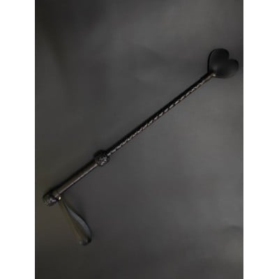 Стек довгий для БДСМ-гри з серцем-язичком, зі шкіри, з петлею на рукояті, чорного кольору