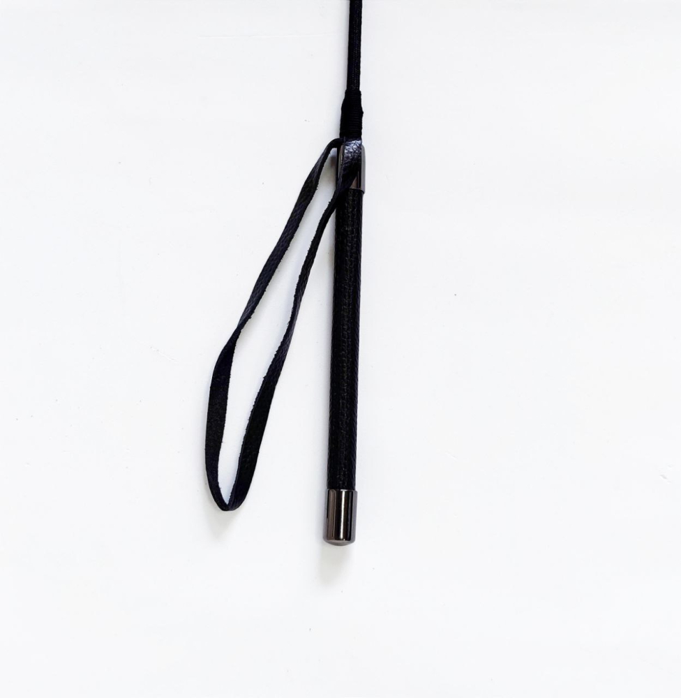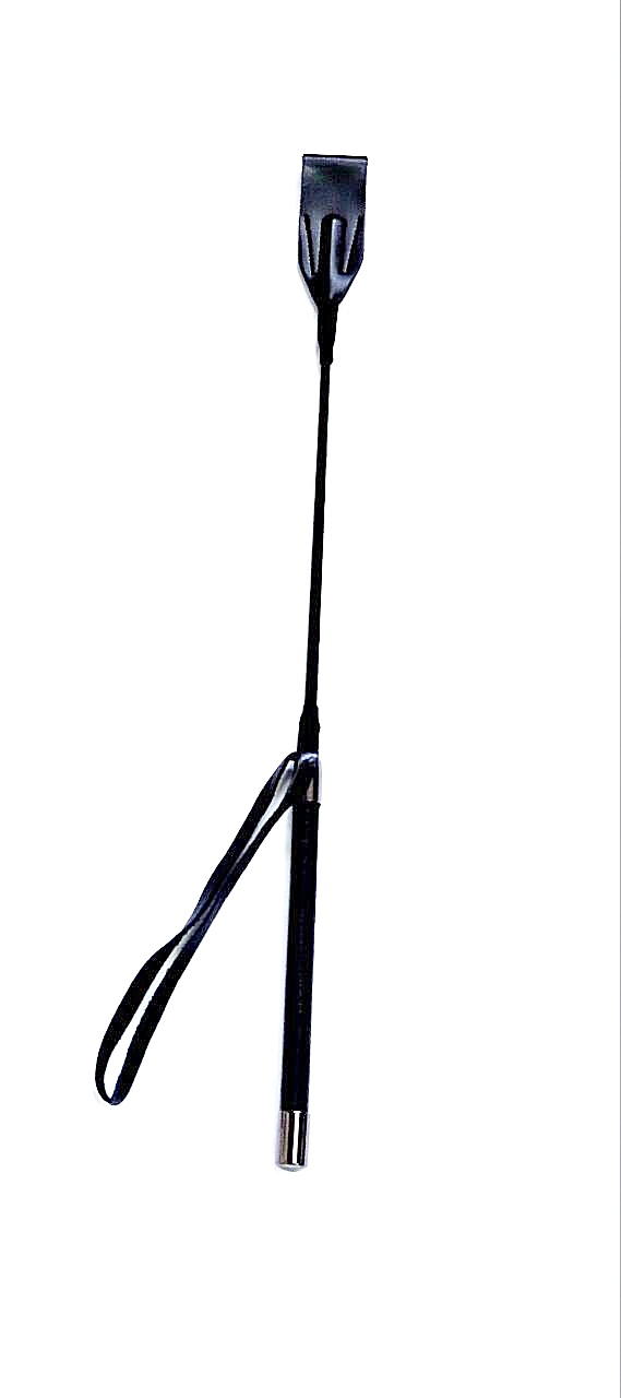 Стек БДСМ із сріблястою вставкою на ручці із натуральної шкіри чорного кольору DS Fetish