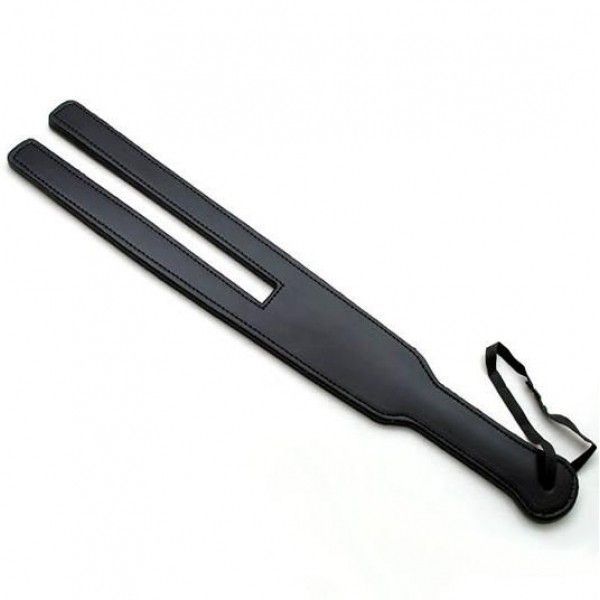 Чорний шотландський стек виготовлений з натуральної шкіри у формі довгої лопатки з вирізом. В кінці приєднаний міцний ремінець. Розміри: довжина 43,5 см., ширина 6 см., товщина 0,6 см.