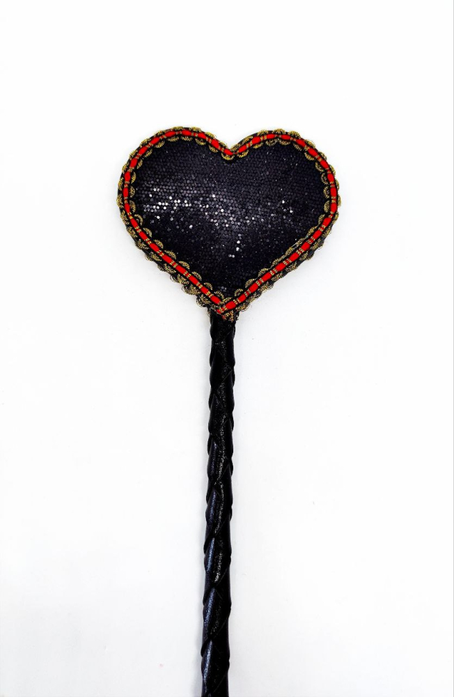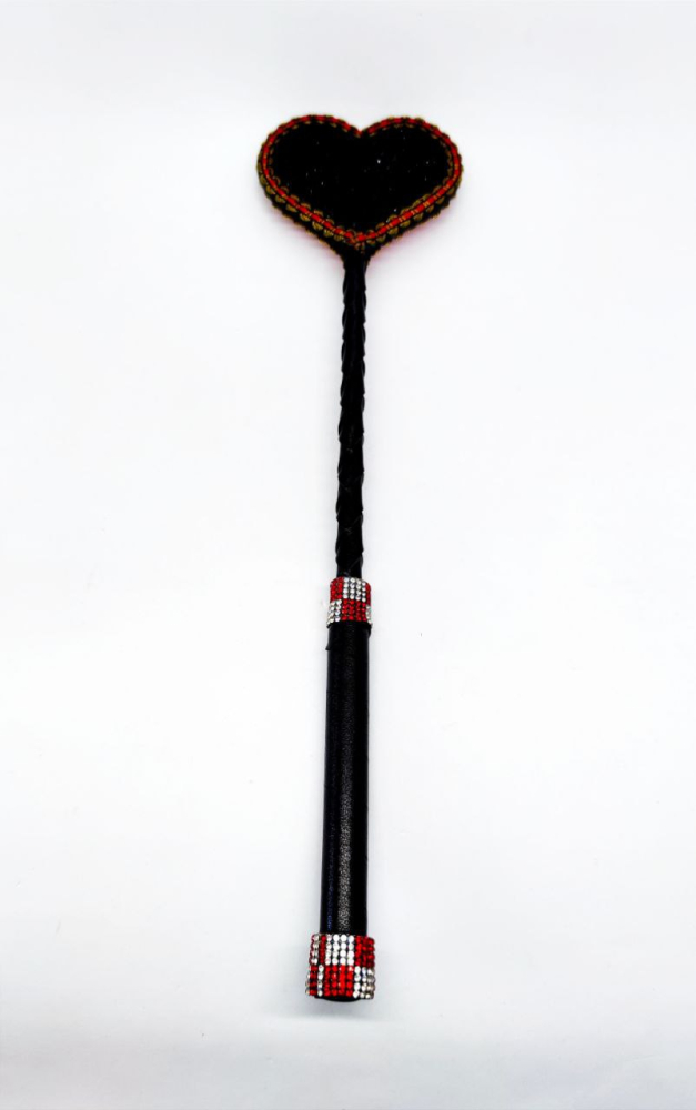 Стек у формі червоного серця з плетінням БДСМ зі штучної шкіри чорного кольору DS Fetish