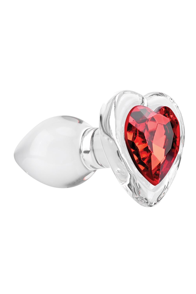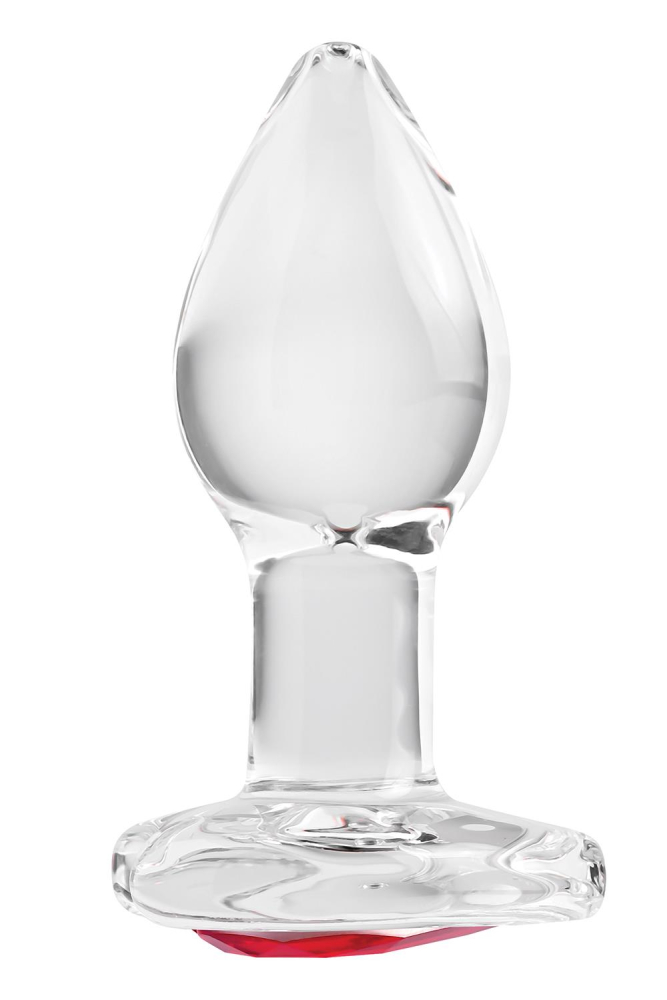 Анальний скляний корок прозорого кольору з червоним камінчиком у формі серця Adam & Eve Red heart gem glass plug розмір Small