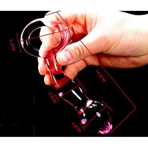 Приголомшлива анальна іграшка рожевого кольору з якісного скла. Довжина 14,3 см., максимальний діаметр 3,2 см., Мінімальний діаметр 2,5 см.