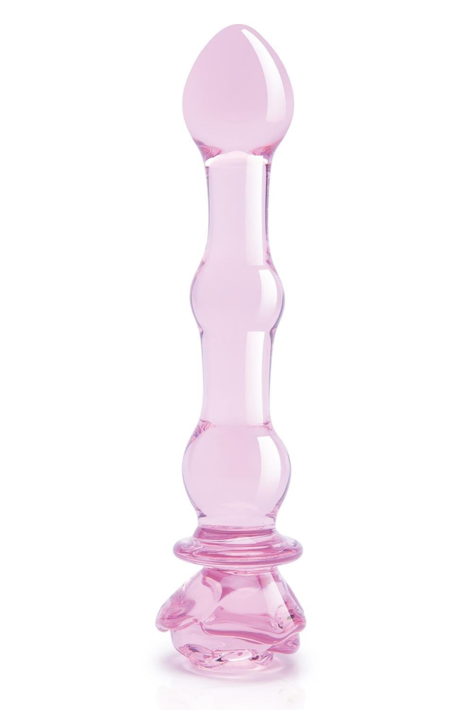 Ділдо з бусинами у формі бутона троянди з колекції Glaze Glass має основу/ручку у формі троянди та подовжений стрижень для максимальної стимуляції. Його гладке, безпечне для тіла боросилікатне скло робить його сумісним з усіма мастилами та простим у використанні для користувачів будь-якого рівня досвіду.