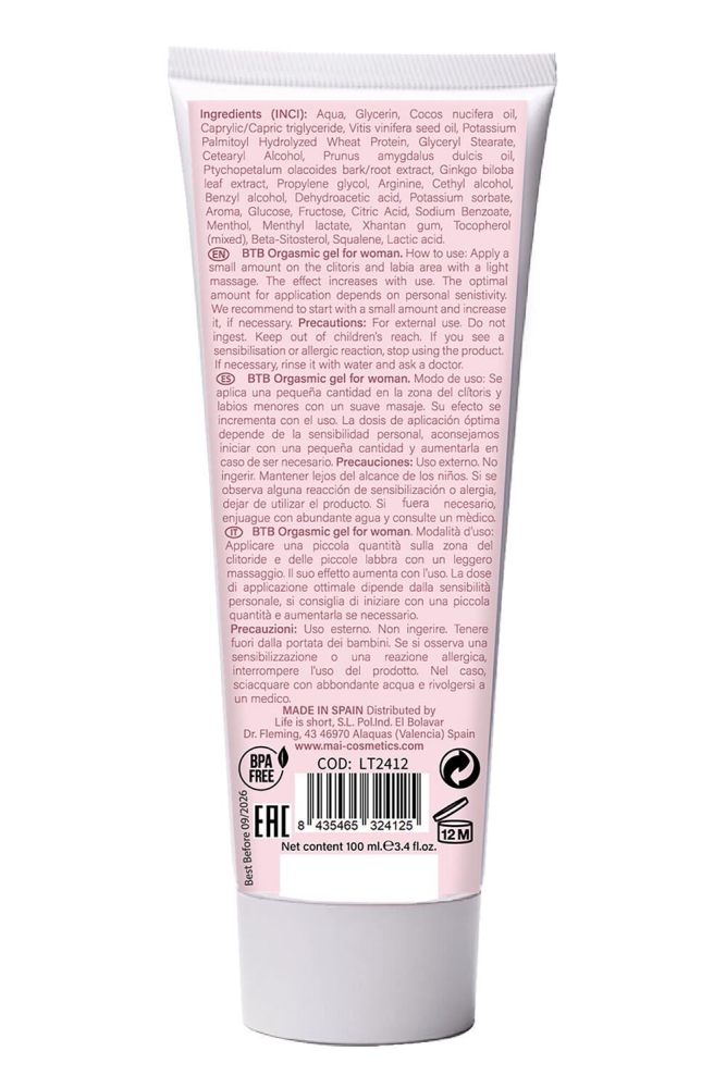 Стимулюючий крем-гель для жінок BTB ORGASMIC GEL поставляється у зручній стандартній тубі 100 мл – її вистачить дуже надовго, адже для досягнення ефекту достатньо однієї маленької краплі!