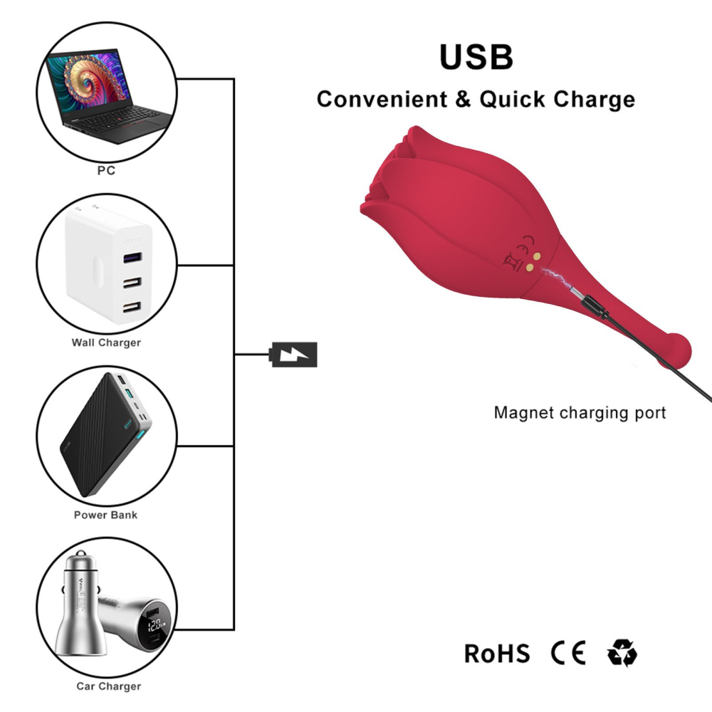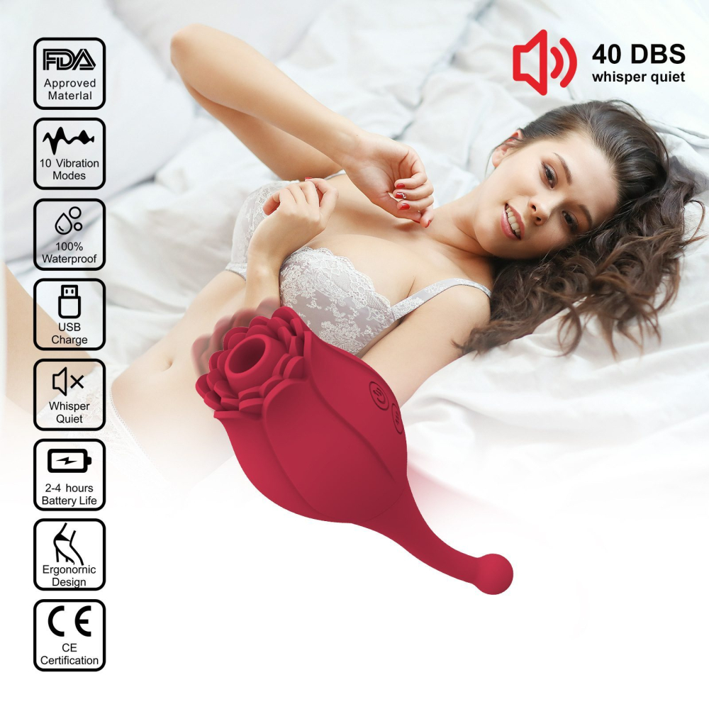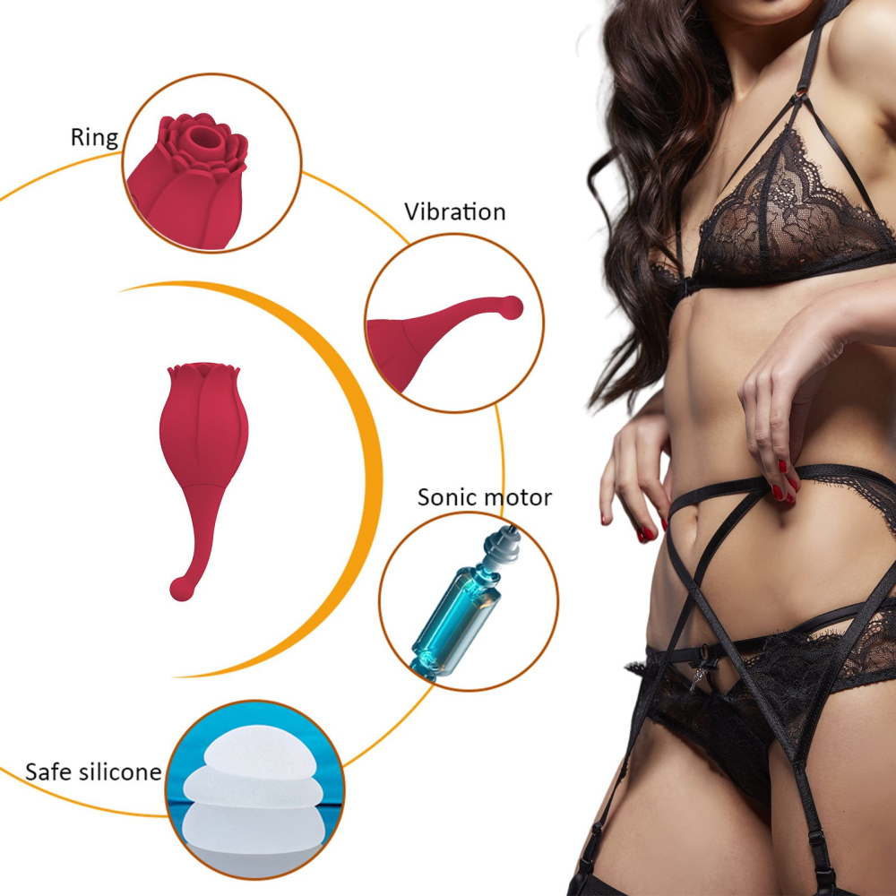 Стимулятор Троянда - це нові відчуття від стимуляції клітора та точки G. Дизайн іграшки створений таким чином, що забезпечить негайний оргазм! Бутон щільно прилягає до клітора та за допомогою вакууму відбувається м'яка стимуляція клітора. Коли Ви вже на піку задоволення, додатково увімкніть потужний режим вібрації та відлітайте за межу всілякої насолоди! Для стимуляції точки G використовуйте тонкий хвостик девайса та за допомогою сильної вібраційної хвилі отримаєте ще більше задоволення. Стимулятор створений повністю з медичного силікону бордового кольору, оксамитовий та приємний на дотик. Він виглядає як сувенір і не викликає особливих підозр (особливо це стосується тих, хто має дітей). Стимулятор має два двигуни, які працюють незалежно один від одного. На корпусі секс-іграшки розташовані дві кнопки: одна регулює силу вакууму, друга відповідає за режими вібрації. Для включення того чи іншого двигуна кнопку необхідно затиснути на 3 сек, коли індикатор загорівся – клацніть та вибирайте улюблений режим. Для вимикання іграшки кнопку потрібно затиснути на 3 сек. Секс іграшка «Троянда», що перезаряджається через магнітний USB-шнур (літій-іонний), який йде в комплекті. Безперервно працює 60 хв, час повної зарядки-120 хв. Сумісна із лубрикантами на водній основі. До та після використання радимо промити іграшку теплою водою з милом або обробити антимікробним спреєм для секс іграшок. Загальна довжина 140 мм, Довжина стимулюючої головки бутона-75мм, Діаметр бутону 55мм, Діаметр вакуумного отвору 15мм. Кількість режимів вакууму-10. Кількість режимів додаткової вібрації – 10. Магнітна зарядка USB в комплекті. Литий гіпоалергенний медичний силікон. Два двигуни працюють незалежно один від одного, м'яка вакуумна стимуляція, потужна вібрація. Упаковка-коробка